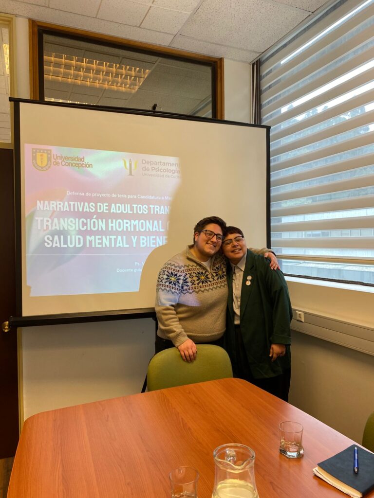 El día lunes 14 de abril 2025, en dependencias de nuestra casa de estudios, el estudiante del Magíster en Psicología Ps. Viktor Fonseca Bonilla defendió su proyecto de tesis titulado “Narrativas de adultos transmasculinos chilenos: Transición hormonal con testosterona, salud mental y bienestar psicológico” dirigida por el docente e investigador UdeC Dr. Cristian Oyanadel. En la oportunidad, el alumno expuso ante una comisión evaluadora formada por el Académico del Departamento de Obstetricia y Puericultura UdeC Dr. Jaime Parra, la Académica e Investigadora del Departamento de Psicología UdeC Dra. Pamela Vaccari y por el Psicólogo Clínico y de la Salud e integrante del Programa de Acompañamiento a la Identidad de Género (PAIG) Hospital Las Higueras, SS Talcahuano, Ps. Edison Valencia. Junto a la comisión evaluadora, también les acompañó la Directora del Magíster en Psicología Dra. Yaranay López y el Académico UdeC Dr. Víctor Figueroa.